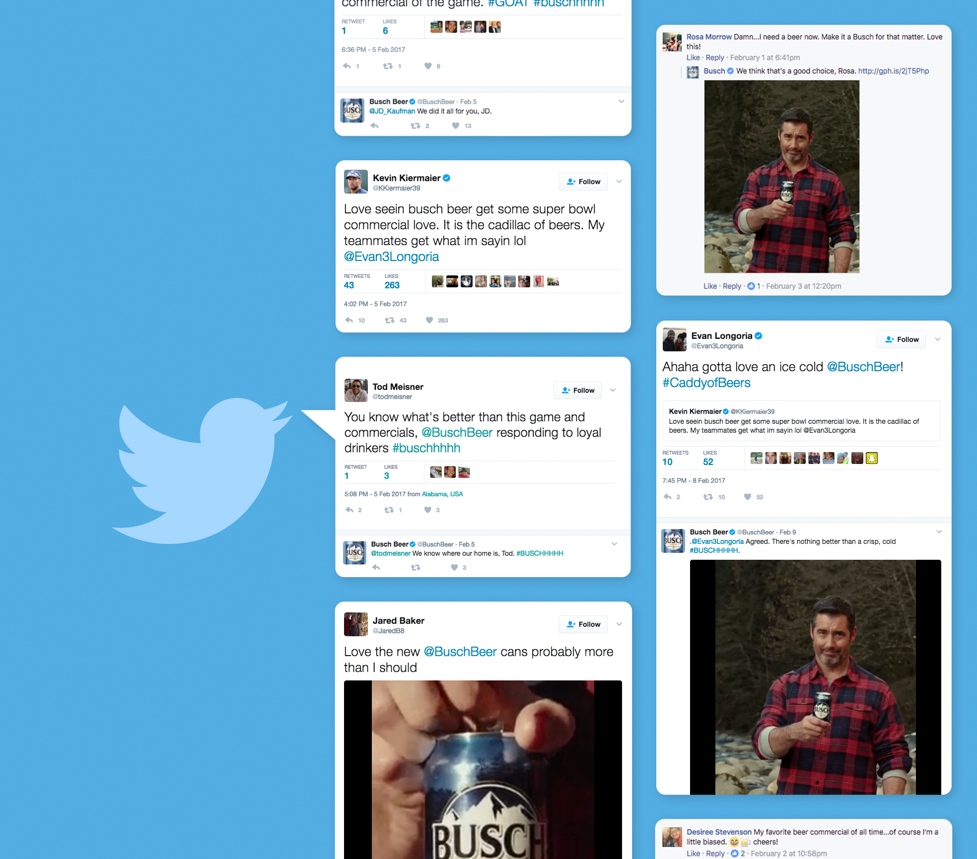 The Super Bowl was just the start. To extend BUSCHHHHHH beyond the Big Game, we created an integrated effort led by a series of commercials featuring what Busch and our loyal drinkers are known for. Hint: It’s beer as crisp and cold as a mountain stream.