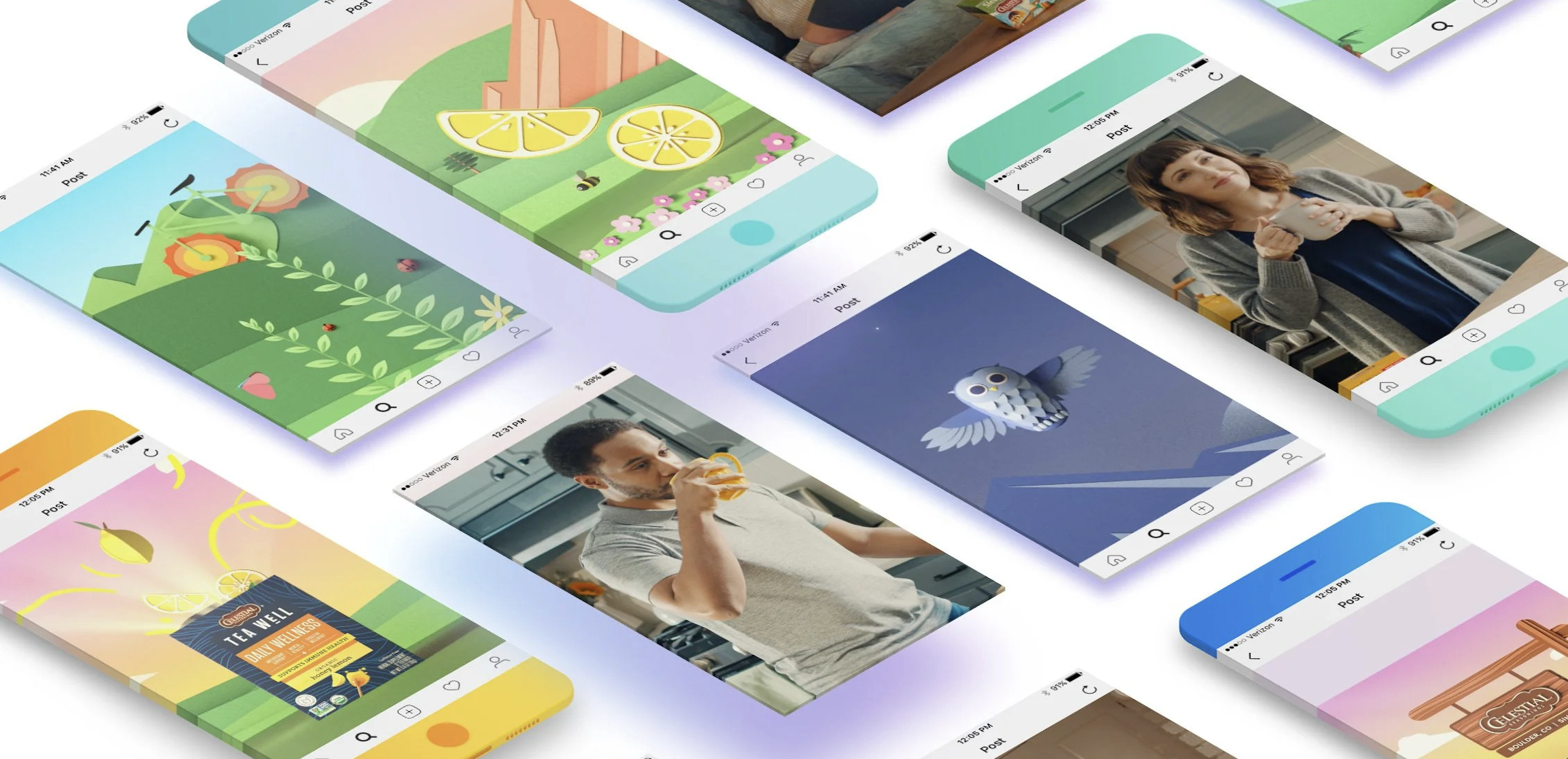 We harnessed the power of nature’s ingredients and added a little bit of Rocky Mountain magic to create this bright, animated world, leaning heavily into the rich artwork Celestial is known and loved for. The illustrations and animations were exported as separate assets to create endless social executions and display banners.